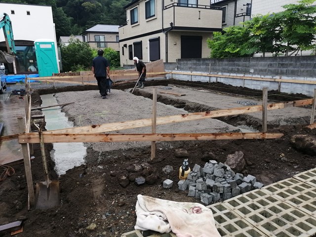 基礎作業中に地鎮祭で賜った鎮物を納め
