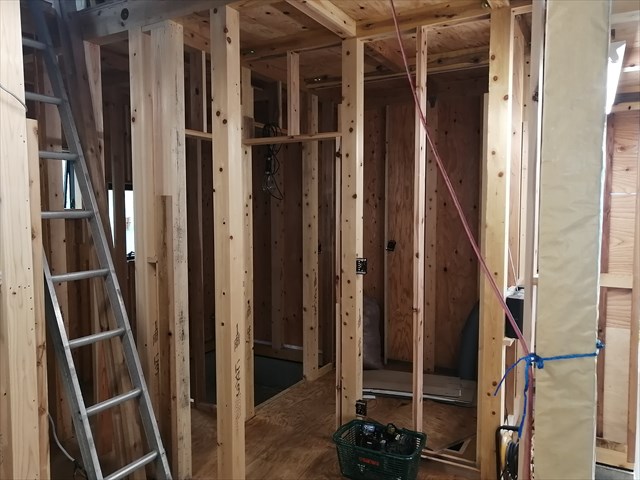 厚木 H邸新築注文住宅7 進捗By 民家工房常栄 / 2020年7月29日 足場とシートで外観の雰囲気が お伝えづらいのですが… ちょっとだけ見える部分をパチリ 小原大工の手によって 内部も着々と 進められています。 電気系等のボックスも望月電気商会さんの手で各所設置済み。 順調に進んでいるので まもなくセルロース施工にうつります。 ~「空気・水・素材」をイエカラ整える~本物の国産自然素材と遮断熱住宅は民家工房常栄~