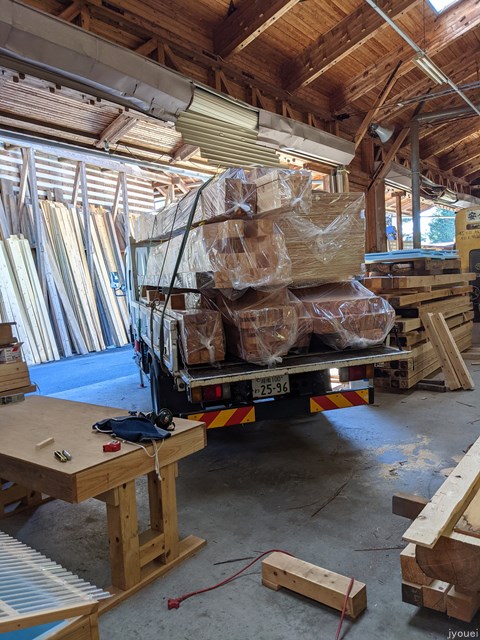 島根よりお嫁入りした材は土台と垂木は檜、梁は杉。