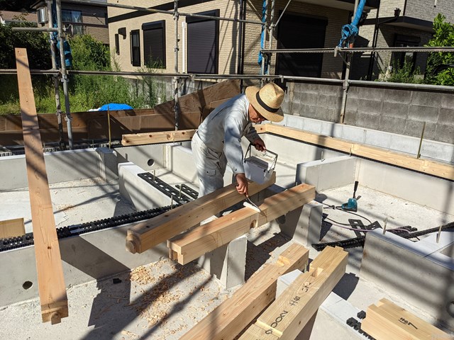 自然由来のホウ酸の防蟻材を塗布し準備完了。