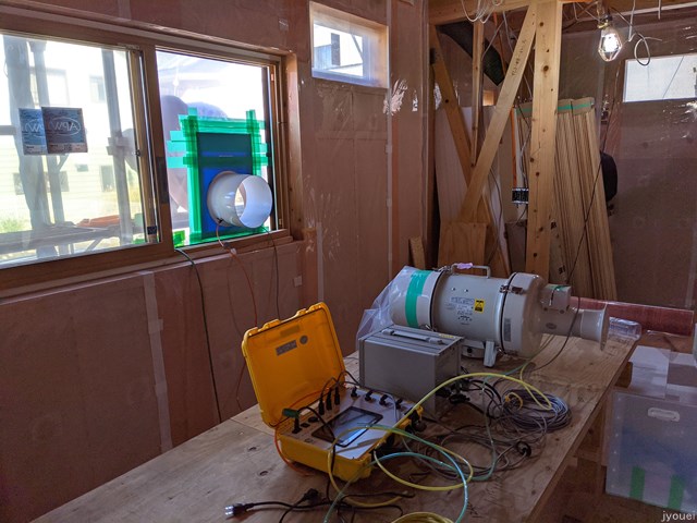 青木さんが気密測定に来てくれました。