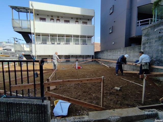 現場では基礎工事の丁張作業が
