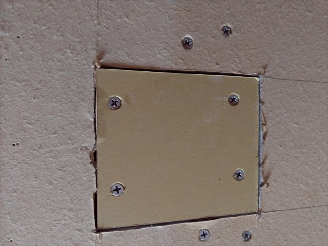 秦野 S邸リノベーション4 板張り天井By 民家工房常栄 / 2019年7月8日 天井の板張りは芯を確認しながら 照明器具部も加工して進てめていきます。 同時にビニールクロスを土佐和紙に 変更する準備をしていると 男の子が生まれた家にありがちな思春期の象徴発見( ´艸`) 下地を入れる為に、周囲を切り取り 仮止めし、芯材を入れて同じサイズの下地を取り付けます。 この後にクロス屋さんがパテ埋めをし 土佐和紙で仕上げます ~「空気・水・素材」をイエカラ整える~本物の国産自然素材と遮断熱住宅は民家工房常栄~