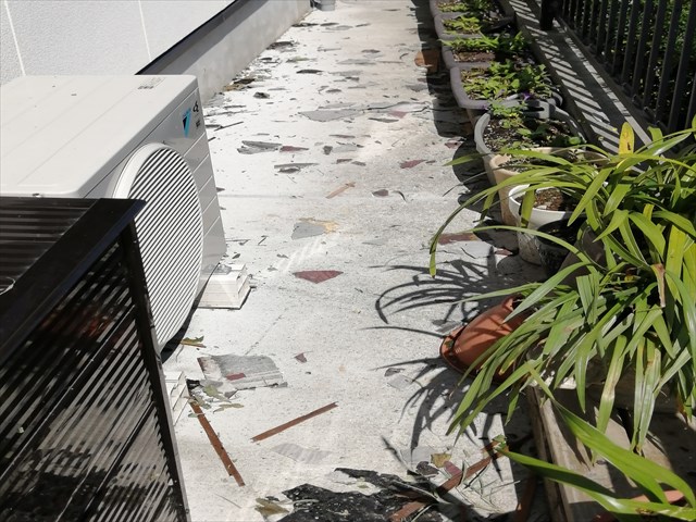 不幸中の幸いで、割れたのはペアガラスの外側のみで雨水被害にあわれなかった事
