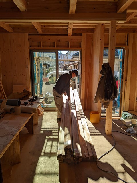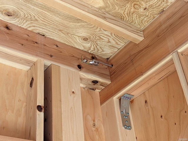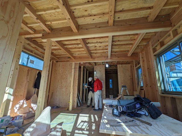八王子 N邸新築注文住宅6 金物検査By 民家工房常栄 / 2022年1月25日 上棟後はアール収納工房山本芳大工が 丁寧な作業を続けてくれています。 現場監督山本のお仕事は 大工が円滑に進められるよう 作業場で材料を用意し加工し届ける 日々を過ごしています。 さて本日は金物検査日。 外部調査機関の検査員が到着し 図面片手に金物が正しい位置に 正しい箇所に ついているかを1階2階と確認します。 今回も金物検査は合格。 現場と作業場の日々に戻ります。 ~「空気・水・素材」をイエカラ整える~本物の国産自然素材と遮断熱住宅は民家工房常栄~