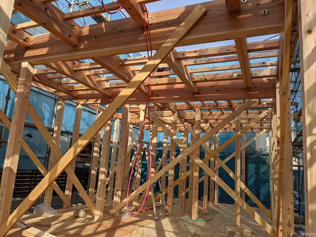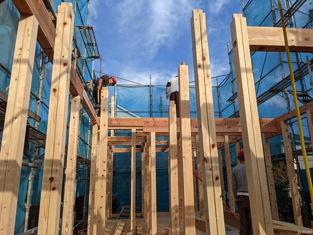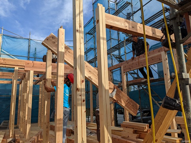 若い子達の賑やかな声と大工の響かせる音が混じる