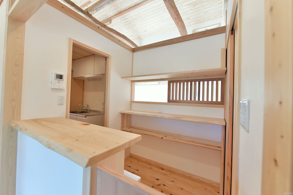神奈川県(杉・檜)小国産杉の浮造り(地熱乾燥) 本漆喰 越前和紙 天然乾燥材檜のカウンターや椅子類