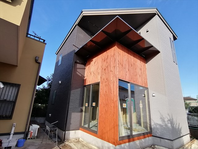 厚木 H邸新築注文住宅14 外観By 民家工房常栄 / 2020年9月26日 庇が塗装された後 足場が外され 施主様達が汗を流して塗装した 外壁がお目見えしました♪ お2人が厳選した色がモダンな外壁とマッチして とっても素敵です。 さらにH様宅は浮造りの床をご希望でしたが 設計士と話し合った結果 ポイント的に床を変更されました。 檜の階段と床のこちらの写真で 雰囲気がお届けできていれば幸いです。 ~「空気・水・素材」をイエカラ整える~本物の国産自然素材と遮断熱住宅は民家工房常栄~