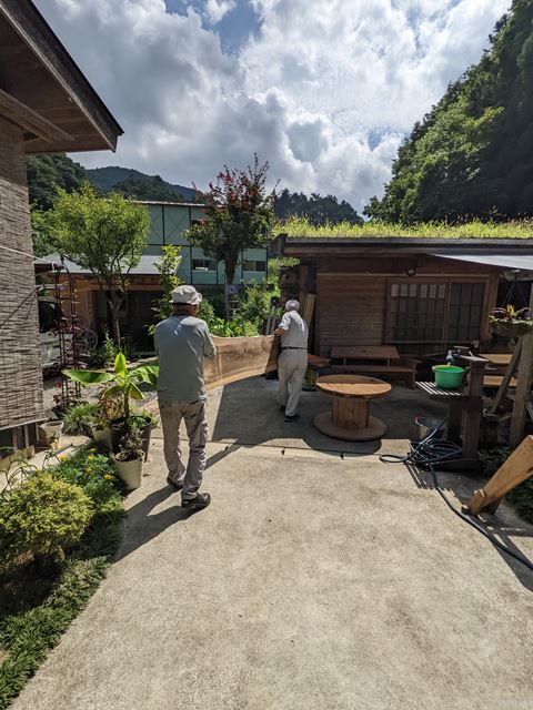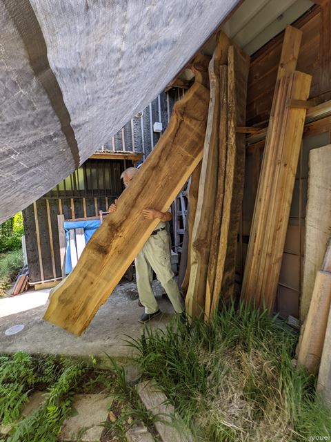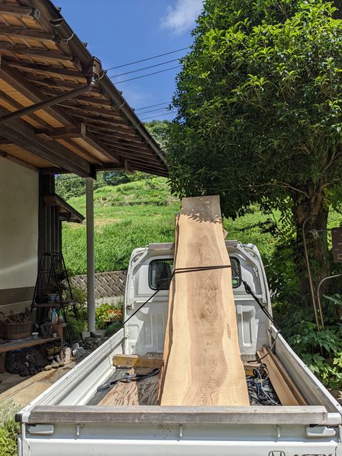 厚木 MA邸新築注文住宅10 どちらがBy 民家工房常栄 / 2022年9月8日 長崎設計士の釜戸ノ上に伺い 大人な遊び時間の作品を見ながら M様邸に使う板を 運び出します。 2枚の板はそれぞれ 個性がある子達。 どちらを施主のM様がお気に召すか 楽しみな二人です。 青空のもと いってらっしゃーい とでも言うように見送る 長崎さんの作品。 ~「空気・水・素材」をイエカラ整える~本物の国産自然素材と遮断熱住宅は民家工房常栄~