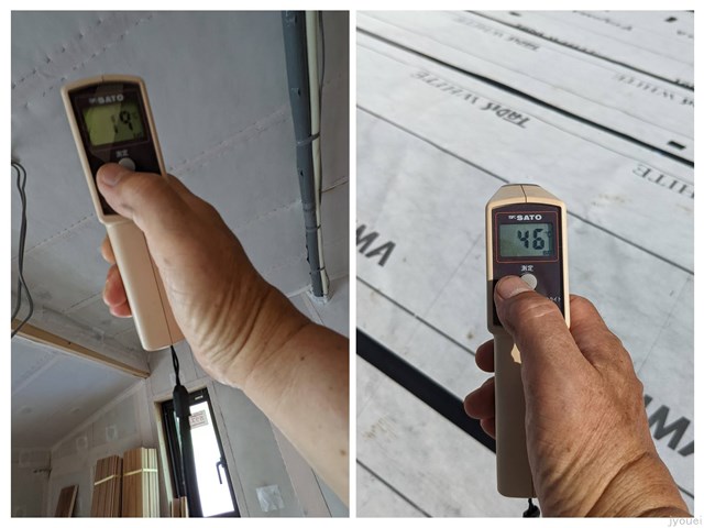 現場のセルロースを吹き鋳込んだ天井は19℃