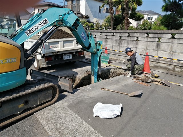 厚木 H邸新築注文住宅12 水道工事By 民家工房常栄 / 2020年9月20日 H様宅は上下水道が新設になるため 水道管のある前面道路からの引き込み工事が 請負とは別途で必要になります。 先日その工事が施工されましたので 現場をお伝えします。 まず、前面道路の掘り返し 管を使用用途に増設 掘り返した箇所を戻して 動路面が完了 その後敷地内も綺麗に埋め戻されました。 ~「空気・水・素材」をイエカラ整える~本物の国産自然素材と遮断熱住宅は民家工房常栄~