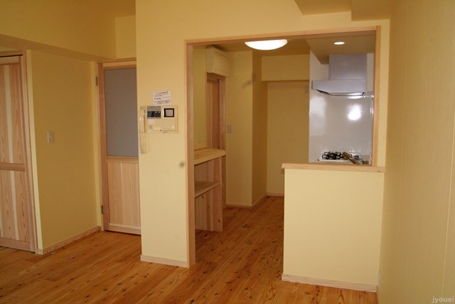 高知の実家の古民家のリフォームのご相談で弊社にご来訪されました。古民家にはとても心惹かれましたが、あまりに遠方ですので地元業者にお任せし、こちらにお住いのT大学の医師である娘様のマンションのリフォームを請け負いました。壁を取り払い国産自然素材をふんだんに使い、室内の空気まで変えられる様に施工させていただきました。写真では本漆喰が黄色く写っていますが、乾くと本来の白い色に変化します。