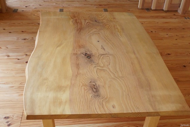 床:小国杉の浮造り(地熱乾燥)