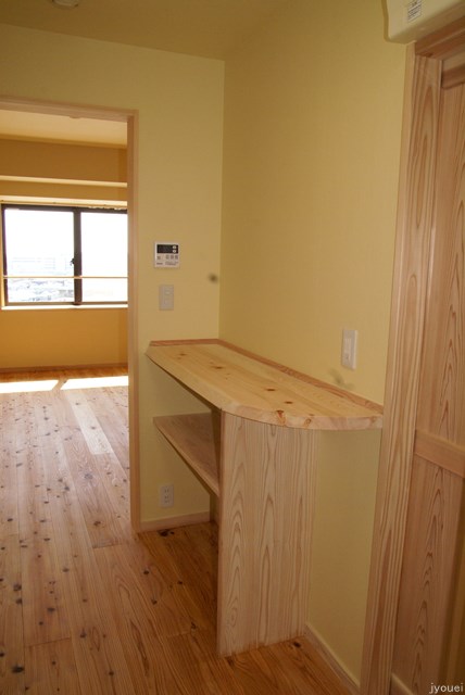 高知の実家の古民家のリフォームのご相談で弊社にご来訪されました。古民家にはとても心惹かれましたが、あまりに遠方ですので地元業者にお任せし、こちらにお住いのT大学の医師である娘様のマンションのリフォームを請け負いました。壁を取り払い国産自然素材をふんだんに使い、室内の空気まで変えられる様に施工させていただきました。写真では本漆喰が黄色く写っていますが、乾くと本来の白い色に変化します。