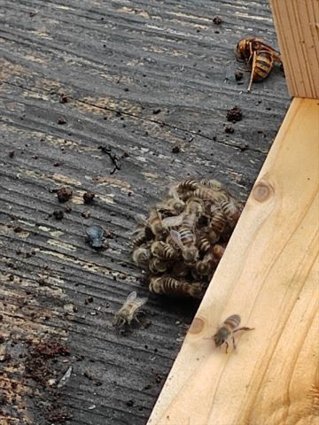 熱殺蜂球とは、日本蜜蜂が集団でオオスズメバチを取り囲み