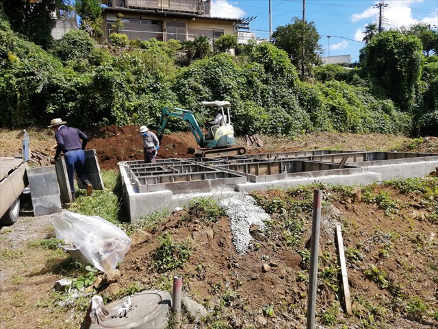 相模原 N邸新築注文住宅3 基礎完成By 民家工房常栄 / 2019年9月27日 基礎型枠が作られ コンクリートが流された後 型枠がはずされ 整地が完了すると 綺麗な基礎があらわれました 水道工事もすすみ まもなく上棟となります。 ~「空気・水・素材」をイエカラ整える~本物の国産自然素材と遮断熱住宅は民家工房常栄~