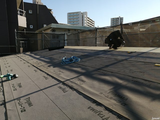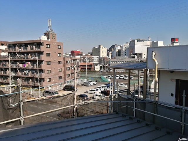 相模原 A邸新築注文住宅12 屋根By 民家工房常栄 / 2021年3月4日 内部だけでなく外部も進んでいます。 職人さんが高い所をものともせず 足場の最上階から施工を始め 屋根に上がり、強度・耐久性・防水性・防滑性などがある 屋根下葺材を小気味良く打ち付けています。 黙々と施工をつづけて下地が完了し 後日、ガルバリウム鋼板が施工され 屋根の完成。 お家に住んでいても、屋根を上から眺める事は稀 という事で ぐるっと 東西南北を 見渡してみました お屋根からはこんな景色が見えるのでした。 ~国産無垢材と自然素材で建てる健康住宅で住む人達を健康に 民家工房常栄~