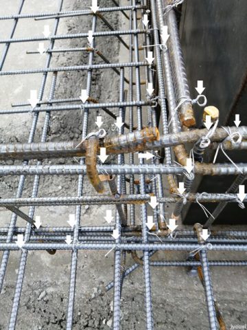 コーナーハンチになる四隅にも(△の形になってます)入れてねじれ防止。