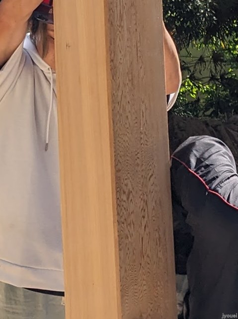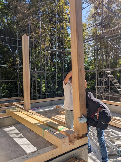 足柄6 柱建てBy 民家工房常栄 / 2024年5月16日 家の周辺をぐるりと囲む 犬走りが造り終わり 上棟前の下準備のため 材料を運び、大黒柱をたてます。 奥は四面無地の木曽檜7寸 手前は青森ヒバ7寸 ちなみに 青森ヒバの大黒を拡大すると… 虎斑入り! 四面が無地の檜と虎斑の青森ヒバが お出迎えする玄関の下準備出来上がり 残りの材料2トントラック3台分を運び 上棟前の下準備が完了です。 ~「空気・水・素材」をイエカラ整える~本物の国産自然素材と遮断熱住宅は民家工房常栄~