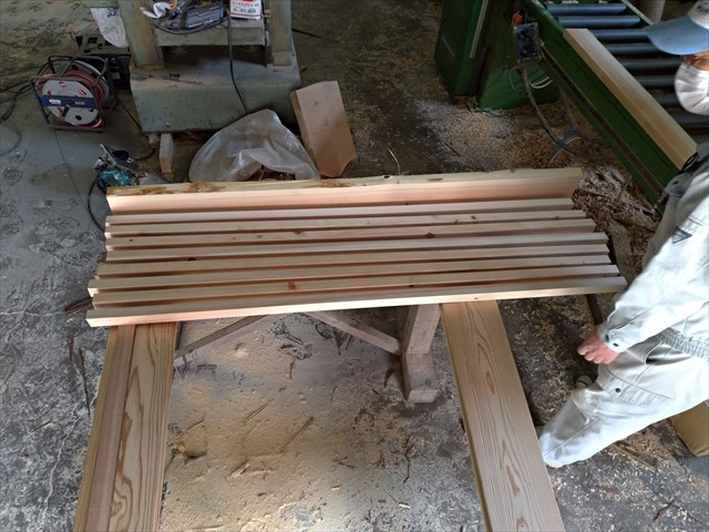 (何が)でっきるかな♪でっきるかな♪By 民家工房常栄 / 2020年3月25日 香り高い檜達が整列! のっぽさんならぬ、山本さんが長さを測り カット 墨で印をつけて 機械や手切りで作業をすすめると はてはてふむ~♪ 可愛い子達が沢山産まれました。 その子達の大きさを揃える為に 左のサイズに合わせて カンナにいいかけて削ります。 整列させると 原木から板に挽いて作った檜の格子でした。 これが弊社では当たり前 ~「空気・水・素材」をイエカラ整える~本物の国産自然素材と遮断熱住宅は民家工房常栄~