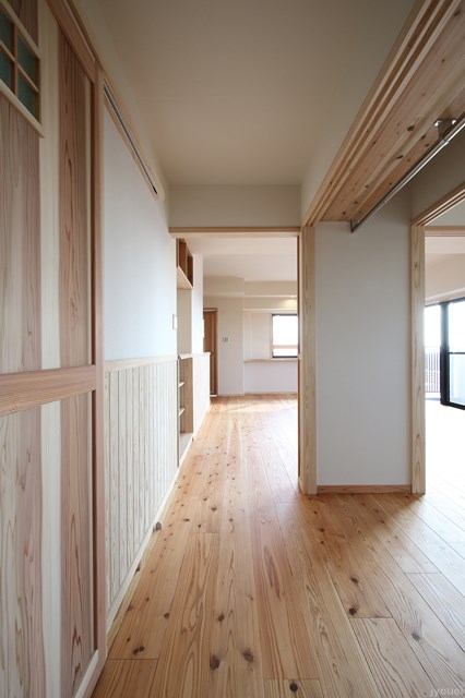 お子様の健康を考えて、コンクリートのマンションを自然素材でリフォームしたいとご希望されました。マンションの壁を取り払う大掛かりなリノベーションとなりましたが、自然素材をふんだんに取り入れた空間が出来上がりました。