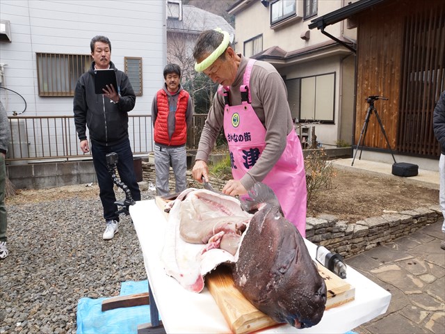 イベント前日は 雪景色 イベント翌日も 雪予報 ドキドキのイベント開催日、寒いけど・晴天 ホッ。 本日は深海ざめ解体ショー+サプライズ (焼津の長谷川船長ご夫婦の45回目の結婚記念日) 当日までに計画を 知っていた人物は